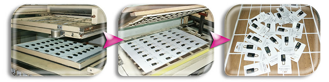 | 包裝物放置台 | 密著包裝機 | 卡片成形切割機 |